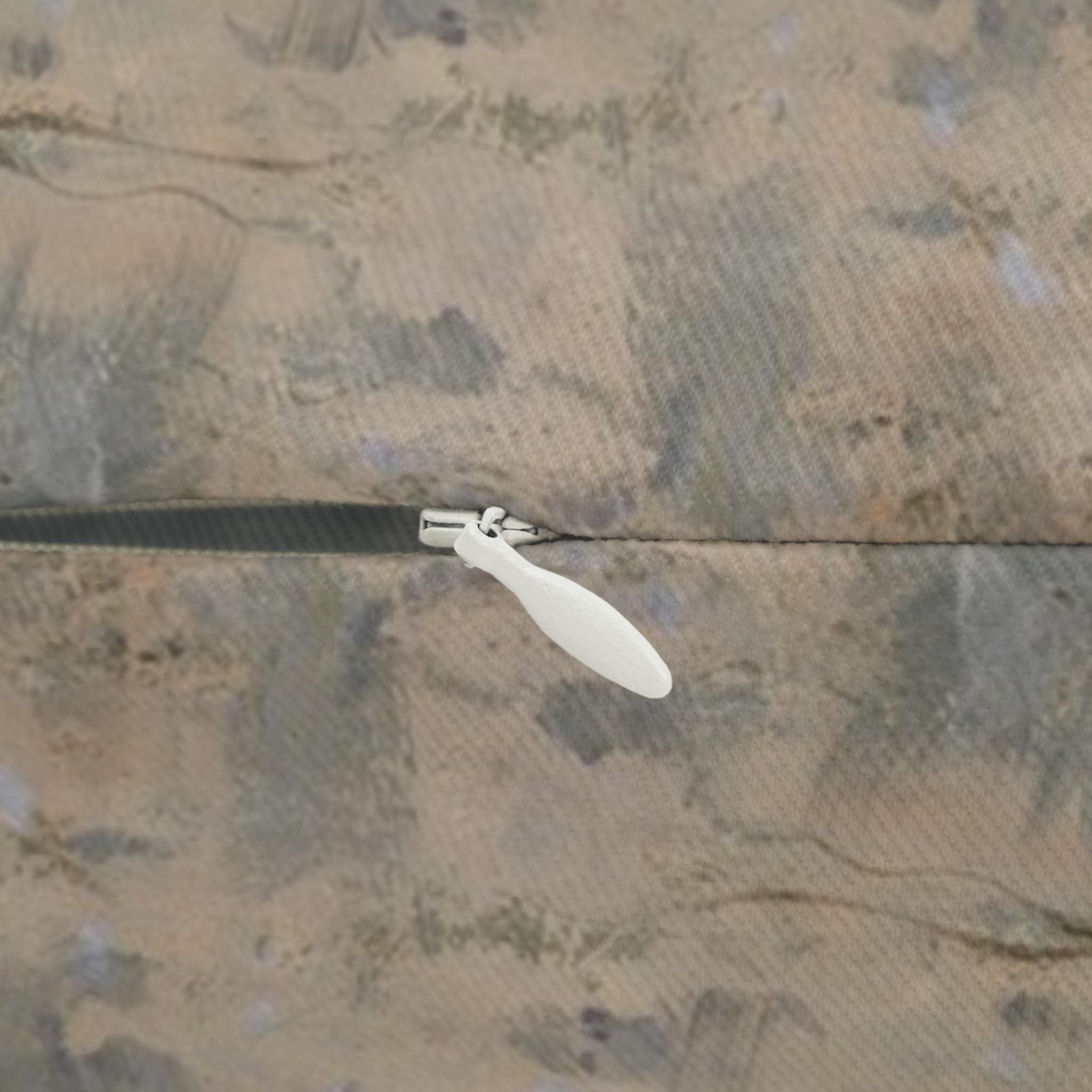 - Beige plastic zipper with a metal head enhances the overall aesthetic.