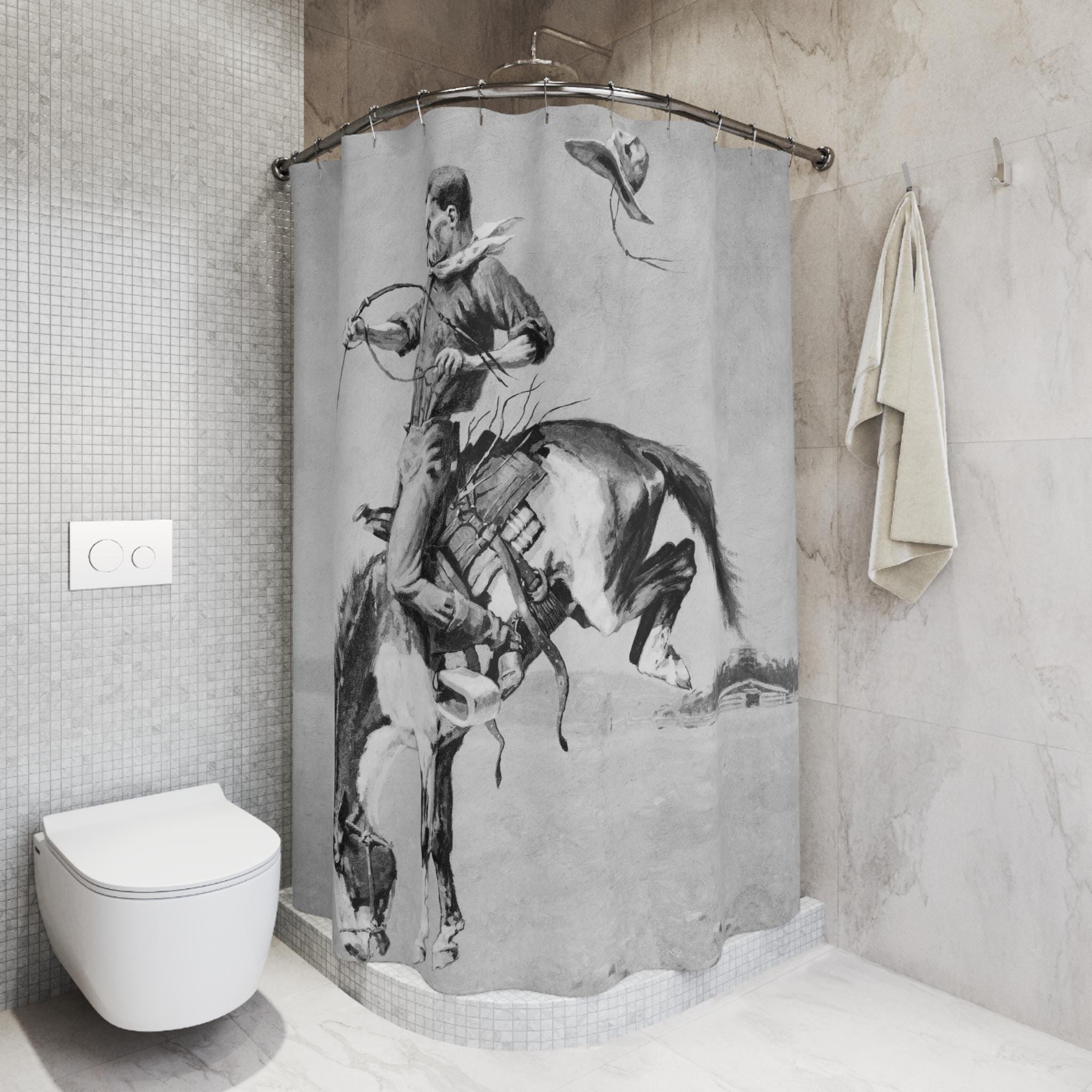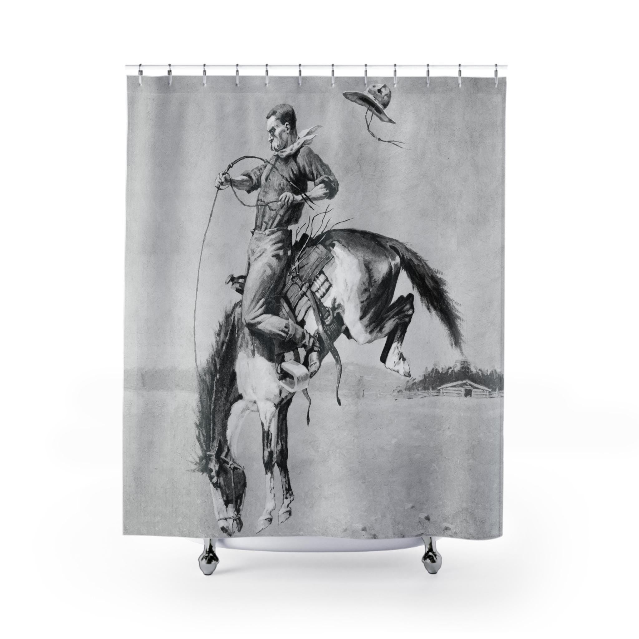 This rustic western shower curtain goes great in your bathroom that has a rustic western southwestern boho home decor ideas. The original artwork was produced by Frederic Reminton in 1908. Made with highly durable polyester.