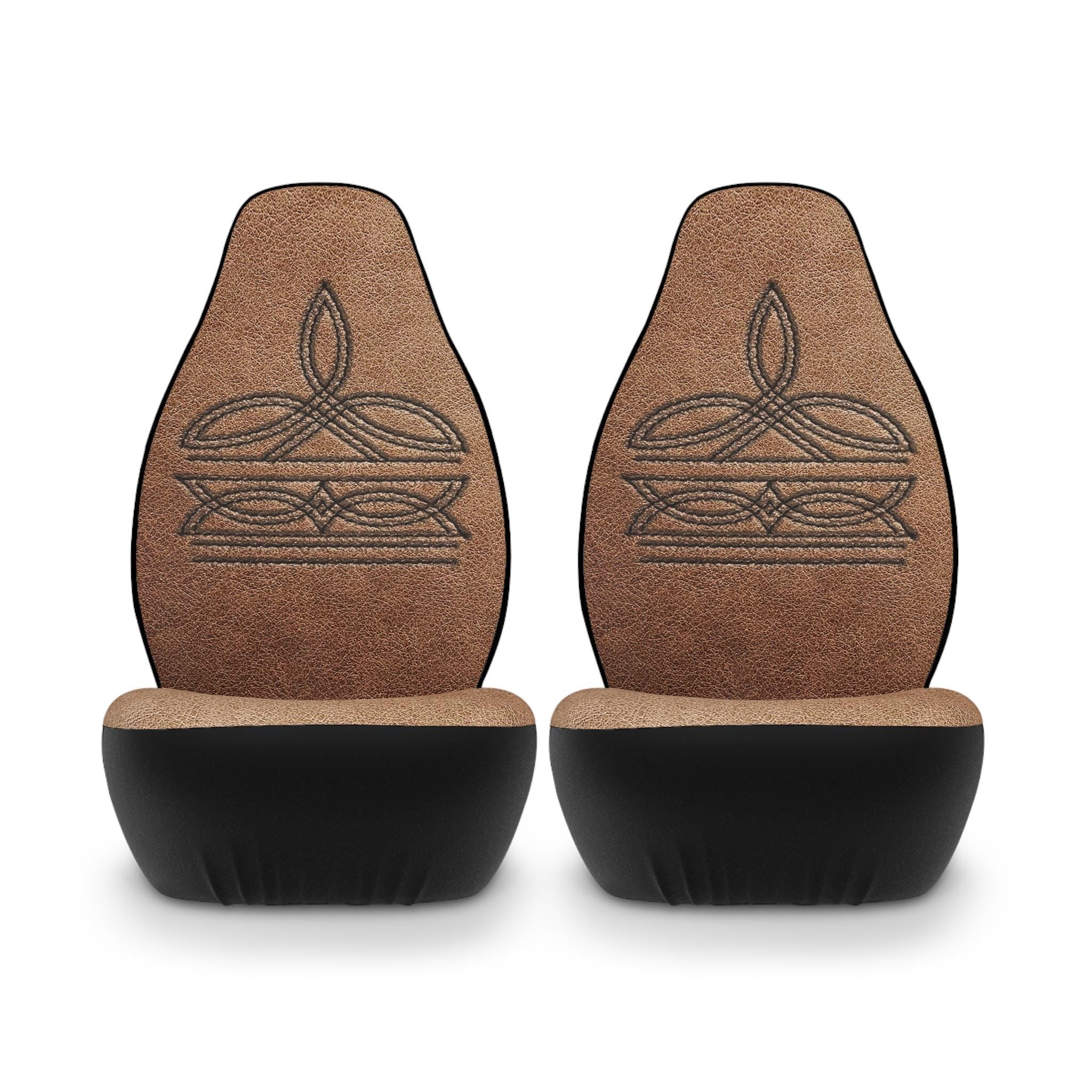 This western seat cover is a unique gift for that rancher or farmer in your life. Made with top-tier, thick polyester fabric for long-lasting durability. These seat covers come with an elastic fastening system that delivers a secure, snug fit that is tool-free and easy to install. Each set contains 2x covers.